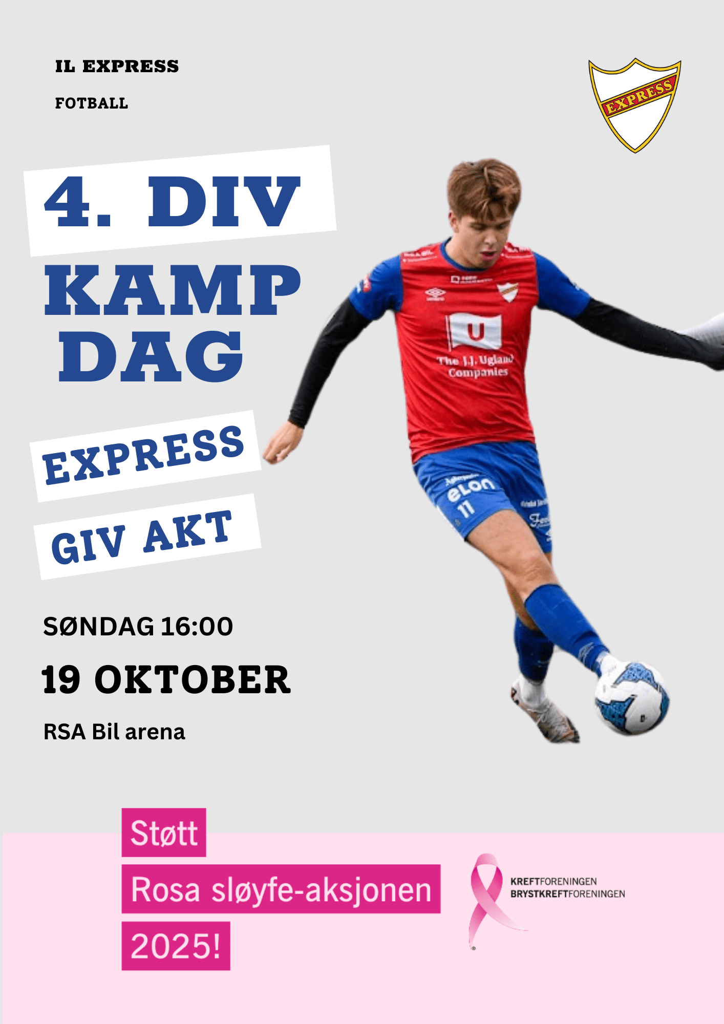 I forbindelse med årets siste hjemmekamp mot Giv Akt på RSA Bil arena. Møt opp søndag 19. oktober kl 16:00, støtt laget og en god sak!